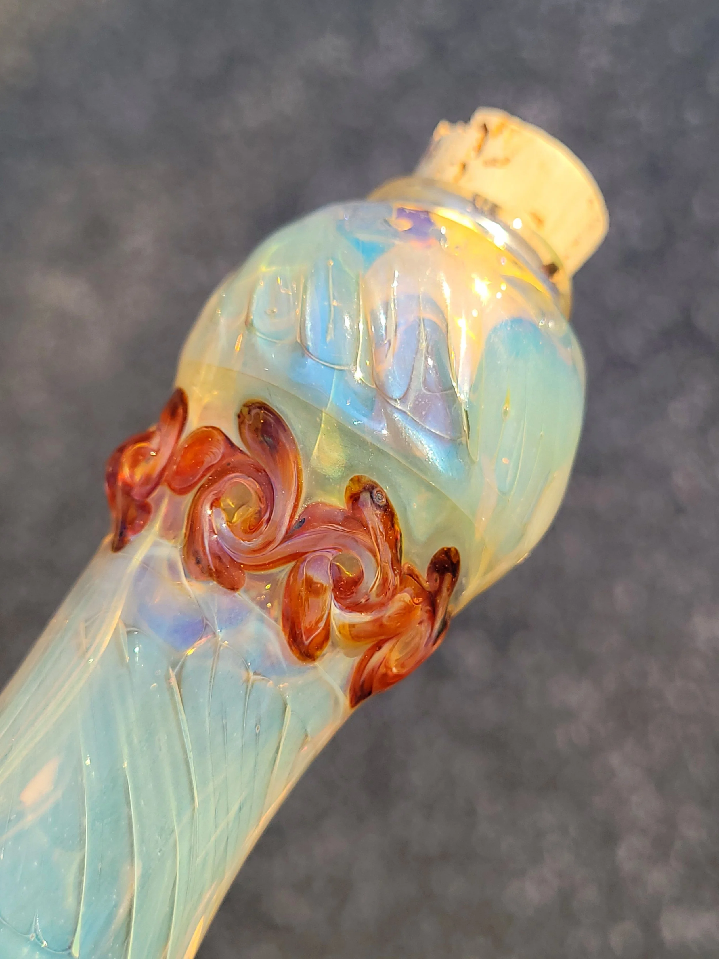 One of my previous talented shopmates left this prep section on my desk due to it not meeting their 1st quality standards. I think it used to be a section that had a slight imperfection on the top. So naturally, I tore away some of that imperfect glass, reworked the shape, and turned it into alittle jar : ) my signature move haha